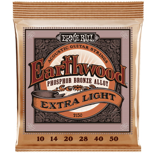 Ernie Ball Earthwood Phosphor Bronze Acoustic Guitar Strings are made from 92% copper, 7.7% tin, 0.3% phosphorus wire wrapped around tin plated hex shaped steel core wire. These guitar strings have a light orange, gold color and provide a mellow, ringing sound, with excellent clarity.