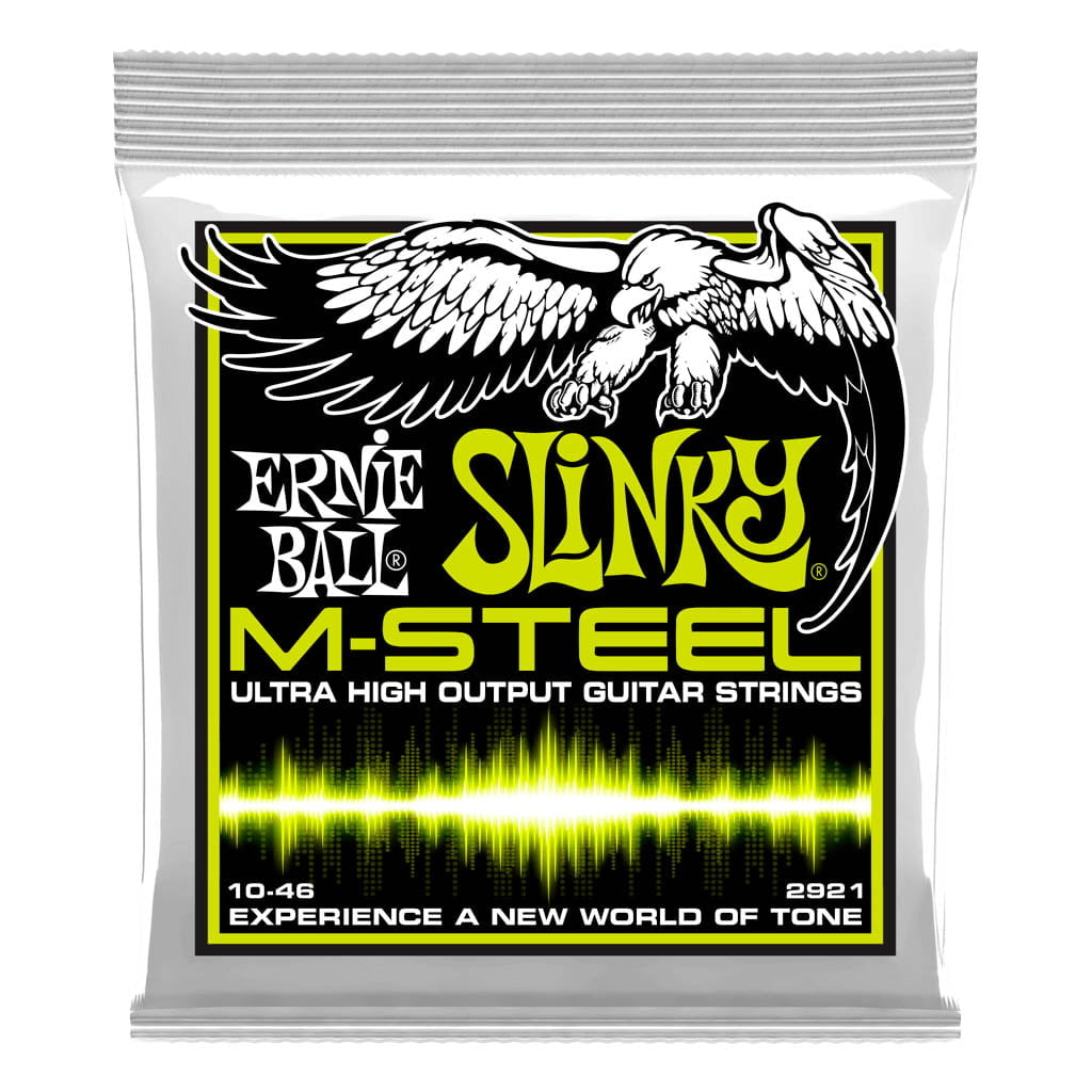 Ernie Ball M-Steel Electric Guitar Strings are made of a patented Super Cobalt alloy wrapped around a Maraging steel hex core wire, producing a richer and fuller tone with a powerful low-end response.